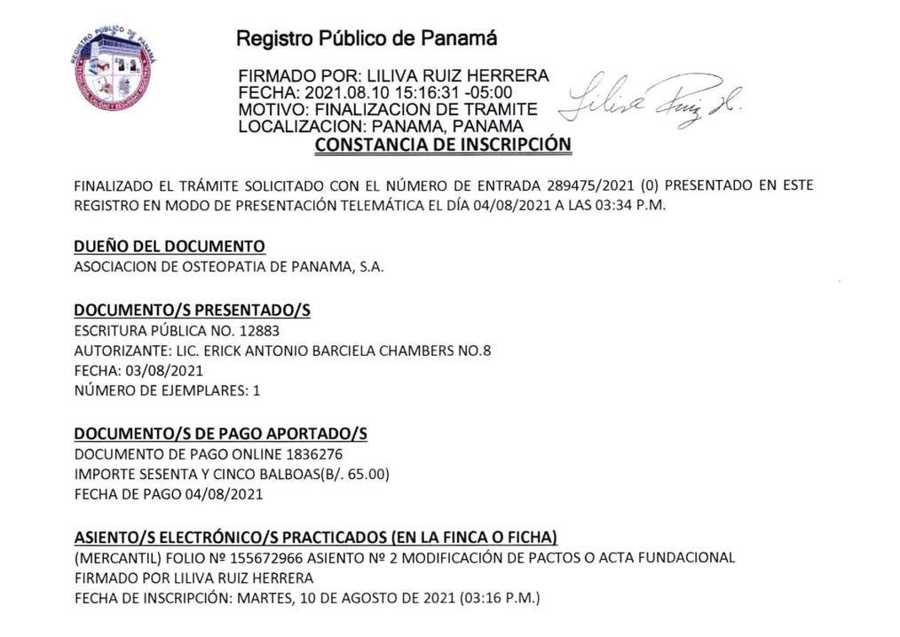 The first osteopathy association in Panama, Asociación de Osteopatía de Panamá...