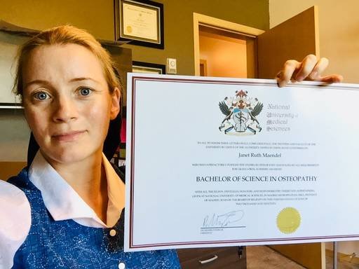 Our students are such positive people. We usually read on Facebook about how happy they are with the education they received with at National University of Medical Sciences (Spain). Just now we read a post by Janet Maendel who practices osteopathy in Manitoba, Canada. She thanked us for her osteopathic education. We are grateful for having such great students.