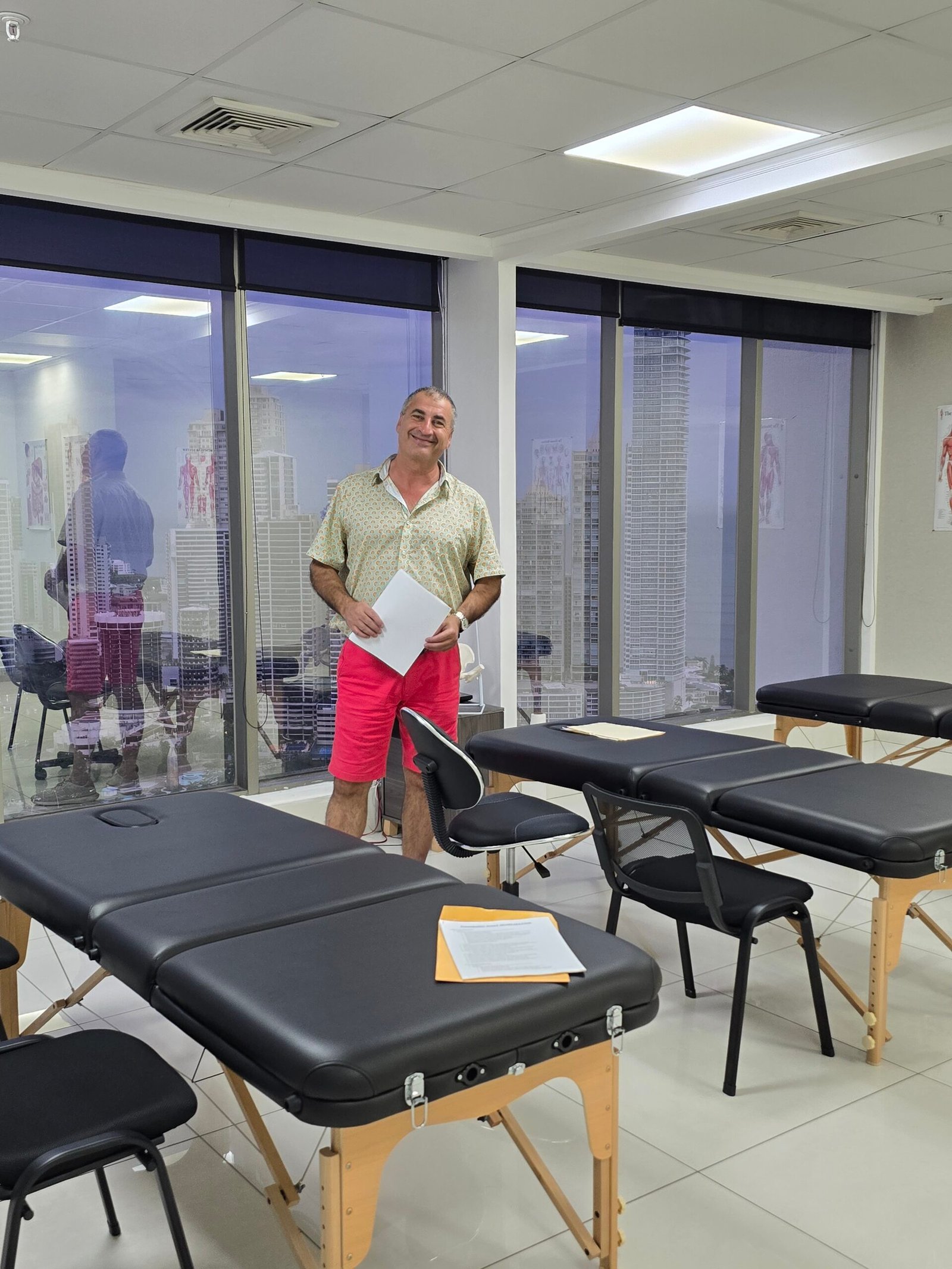 Dr Pourgol made it to the seaview/mountainview campus of the National University of Medical Sciences (Spain, USA, Panama) just in time to make sure everything’s running smoother than a perfectly mobilized spine. We’re all set for a week of clinical skills, business wisdom, and osteopathy techniques—with a dash of tropical inspiration.