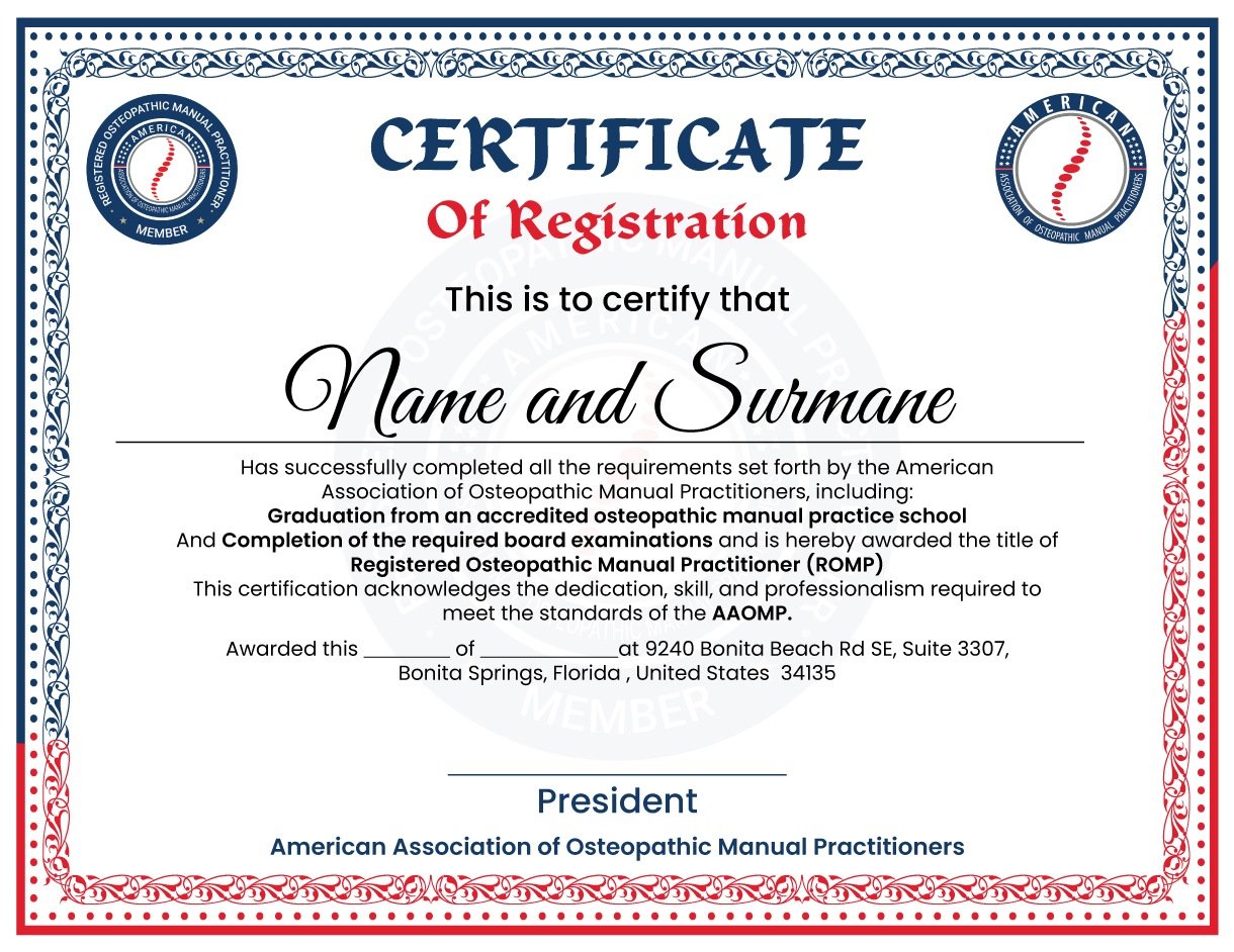 These board exams are a required step for becoming a member of AAOMP. Membership is essential to earn the title of Registered Osteopathic Manual Practitioner (ROMP).