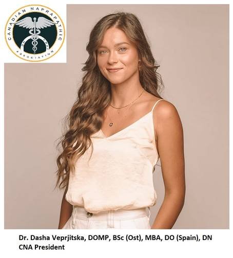Congratulations to NUMSS (Spain) student, manual osteopath & naprapath, Dr. Dasha Veprjitska, DOMP, BSc (Ost), MBA, DO (Spain), DN for being chosen as new president of the Canadian Naprapathic Association (CNA).