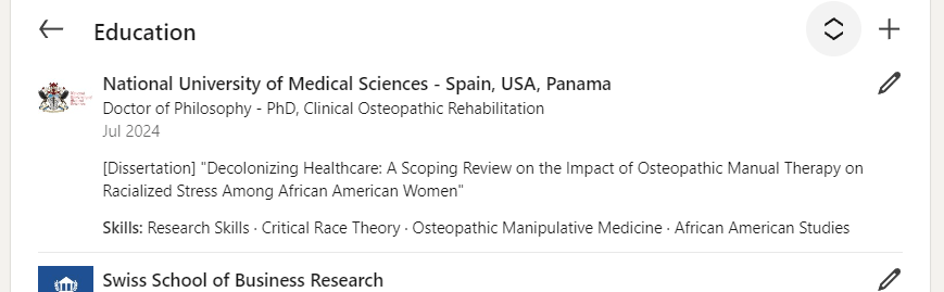 We want to extend our gratitude to our student, American naprapath & osteopathic manual practitioner, Dr. Fionda Williams Brock, RN, MSHS, MSN, DN, PhD for her assistance in getting the National University of Medical Sciences listed on LinkedIn. Our graduates can now include NUMSS on their LinkedIn profiles, which will enhance their networking opportunities.